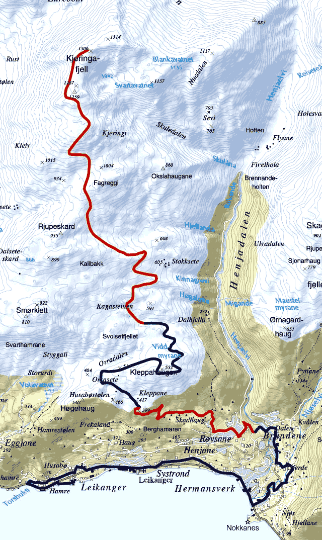 Frå Kleppa til Syril stadion. Fallhøgd: 300m – Lengde: 4 km.