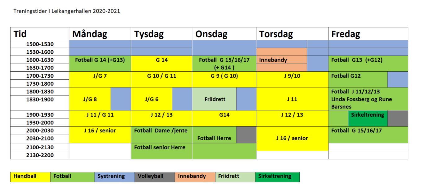 Treningstider Leikangerhallen 20-21