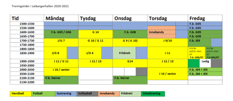 Treningstider Leikangerhallen 20-21